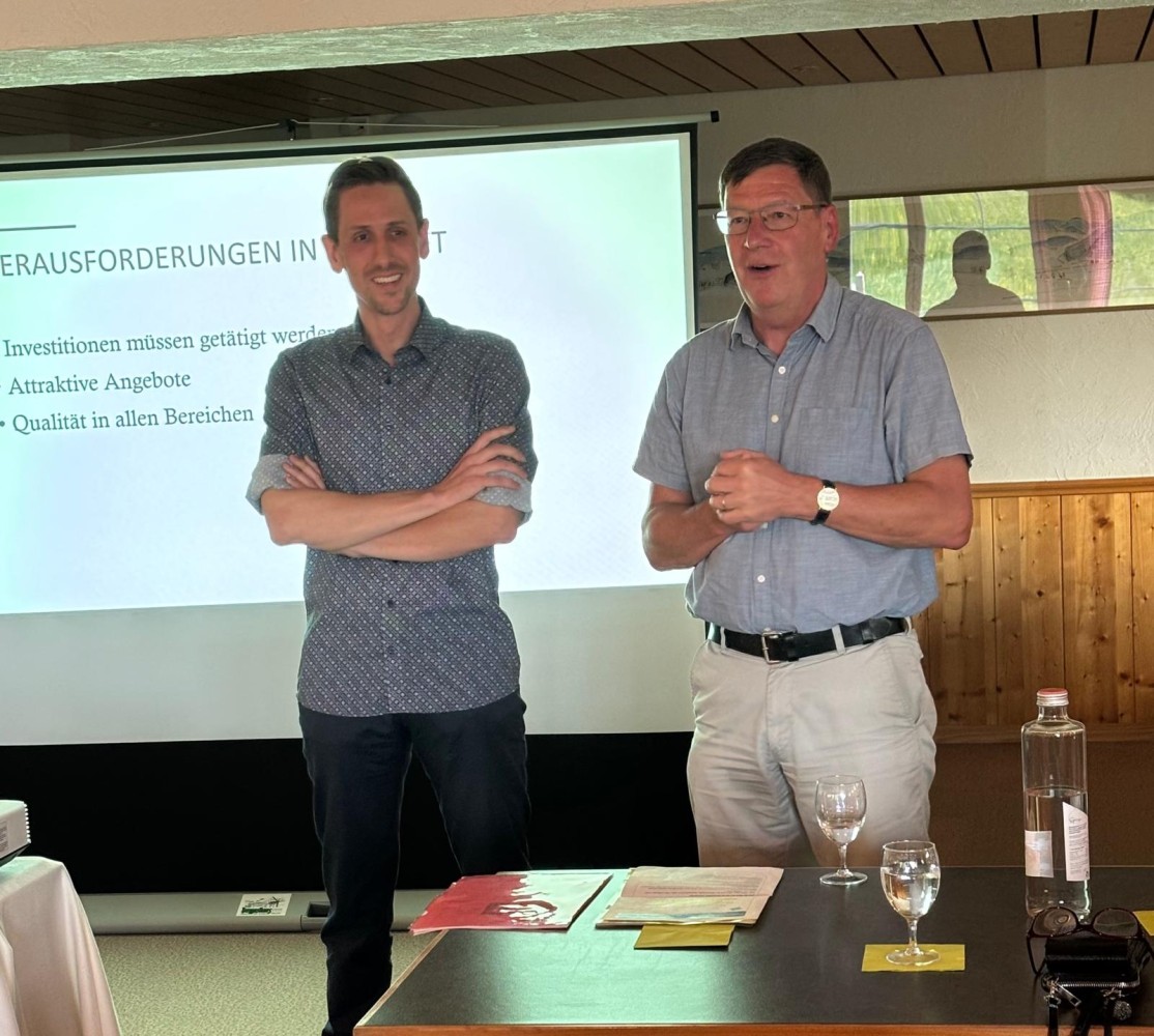 Zwar liegt die Wasserfalle nicht auf Reigoldswiler-Boden, aber sie ist für unser Dorf wichtig – und umgekehrt. Heimat hört nicht zwangsläufig am Gemeindebann auf, und der Blick ins Tal ist bekanntlich wunderbar. Am 15.5.25 referierte Raphael Kissling, Geschäftsführer der Stiftung Luftseilbahn Reigoldswil-Wasserfallen, zum Thema "Wie betreibt man ausserhalb der Skigebiete eine Luftseilbahn?".