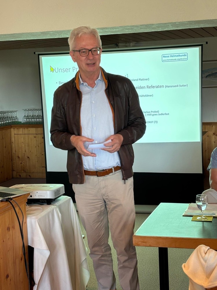 Nach einer im wahrsten Sinn des Wortes stimmigen Eröffnung durch einen wunderbar vorgetragenen Jodel der Geschwister Weber (“Was i z‘allerliebscht möcht ha!” von Adolf Stähli) und dem anschliessenden informativen Teil folgte das Referat von Ueli Mäder. Der bekannte Soziologe umriss in acht Bildern mit seinem eindrücklichen und tiefgründigen Referat das Thema HEIMAT deren Bedeutung im Wandel der Zeit zum Ausdruck.