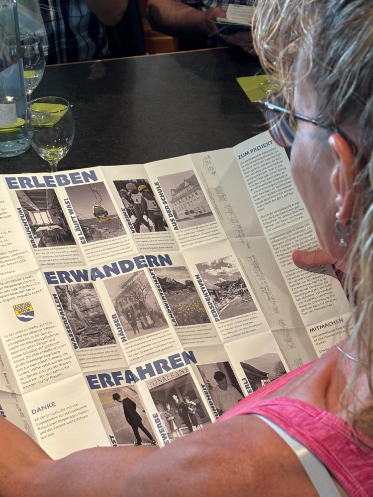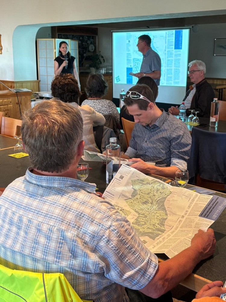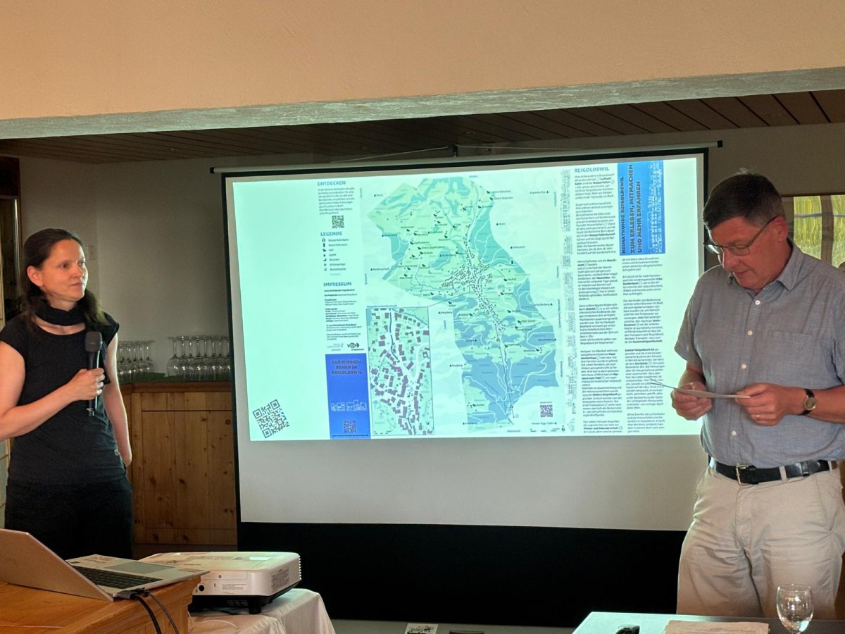Im Anschluss informierte das Projektteam über den Stand der Heimatkunde und vor allem wurde der neue Faltprospekt präsentiert. Es handelte sich also um eine Art ‘Vernissage’… Das Produkt konnte beim abschliessenden Apéro, herrlich zubereitet vom Team "Hintere Wasserfallen", begutachtet werden.