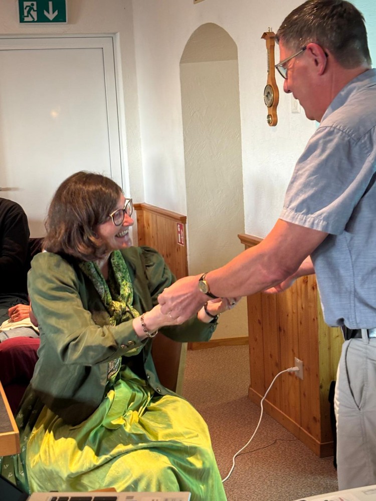 Empfang der Gäste durch Pfarrerin Dorothee Löhr (bitte Links anklicken)
