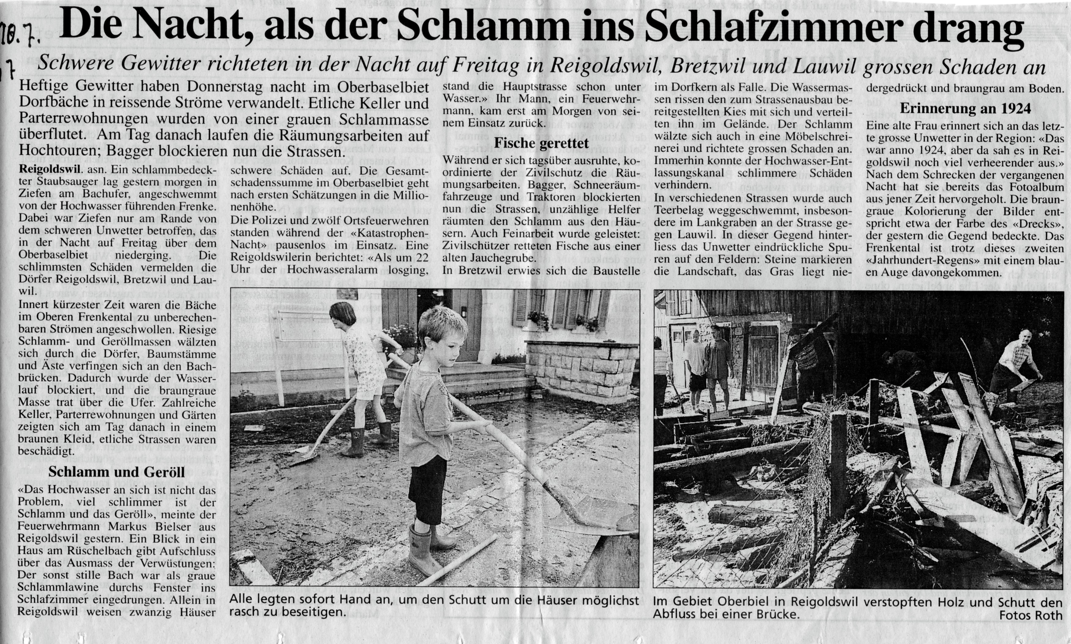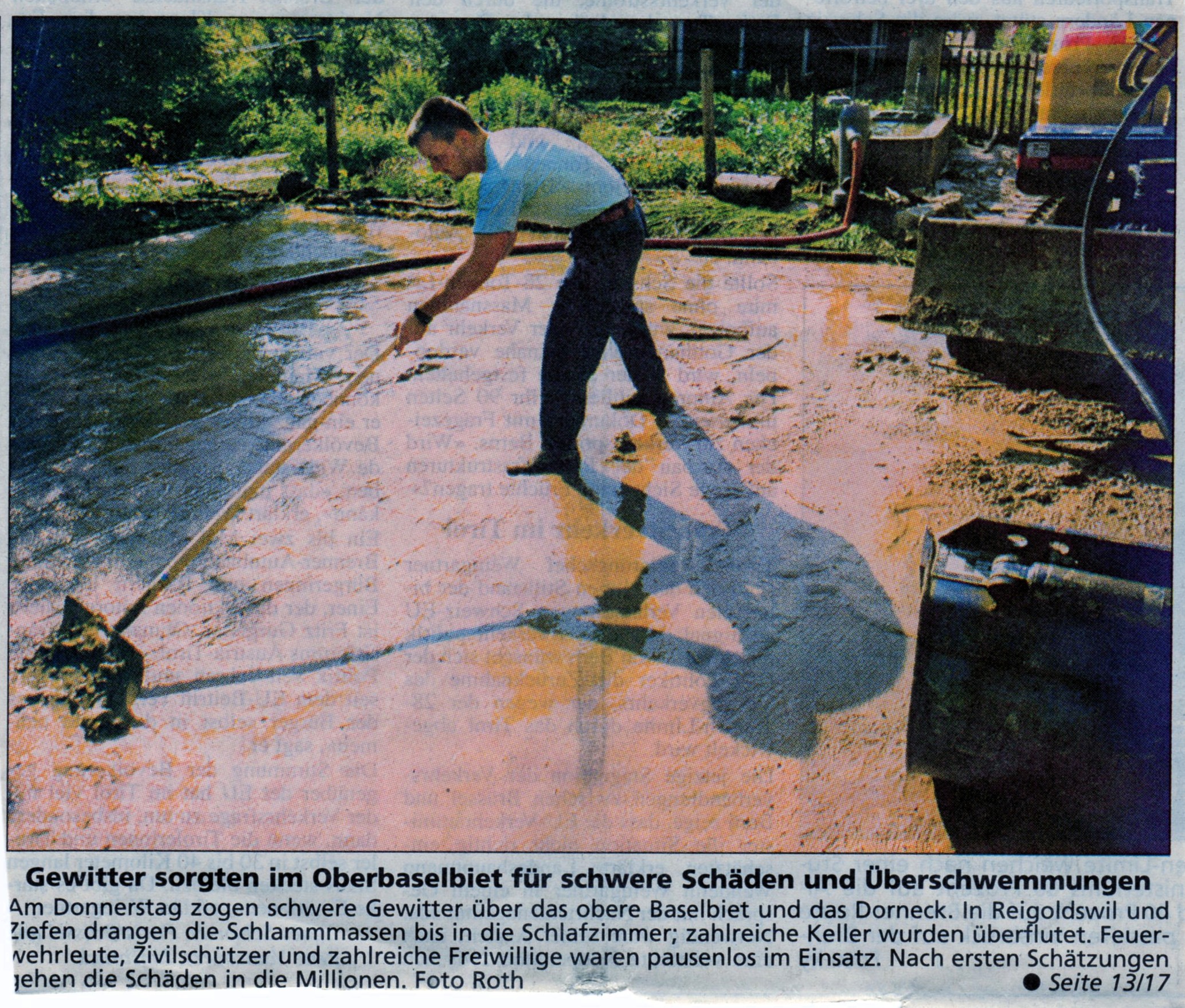Am Donnerstagabend, 10. Juli 1997 ging ein heftiges Gewitter über Reigoldswil und die angrenzende Region nieder und verursachte ein Hochwasser.