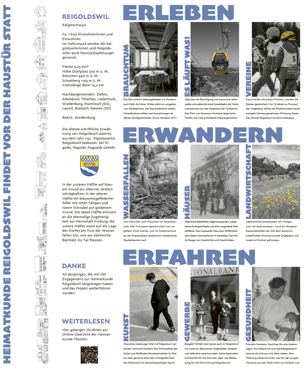 Anlässlich der Info-Veranstaltung vom 15.5.25 auf der Wasserfallen wurde der Faltprospekt, eine Art Brücke vom klassischen Buch zum Online-Medium, vorgestellt. Er wurde an alle Haushaltungen in Reigoldswil verteilt und liegt an verschiedenen Orten, unter anderem auf der Gemeindeverwaltung am Dorfplatz, auf.